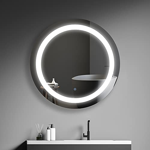 Review MIRPLUS 30 inch Round LED Mirror Bathroom Lighted Vanity Mirror Anti-Fog Dimmable Circle Backlit Makeup Mirror Wall Mounted Smart Mirrors with Lights Touch Switch WaterproofIP44(Hardwired Or Plug in)